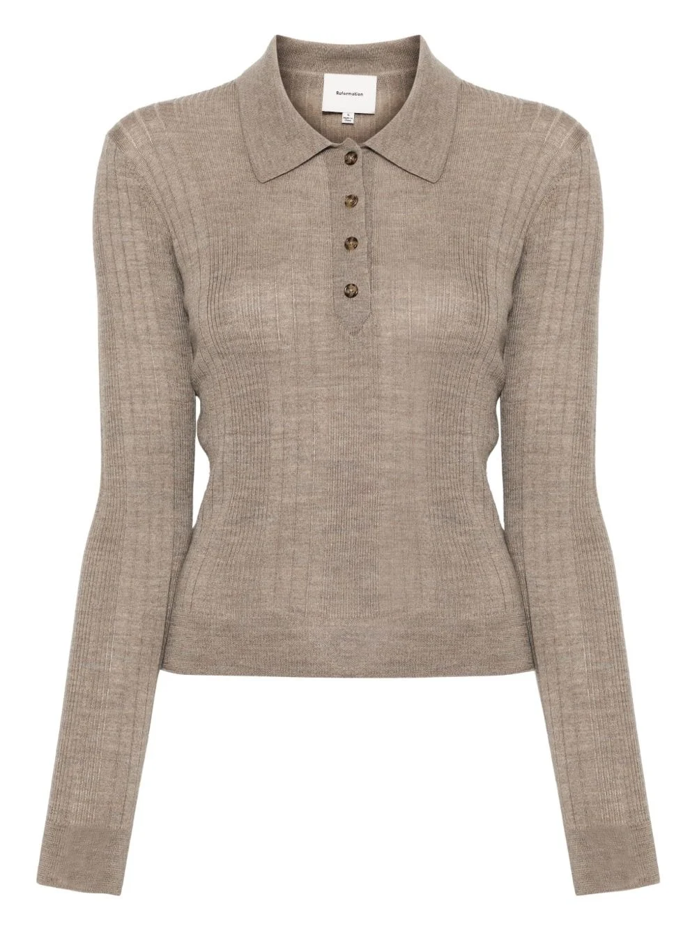 Hermia polo top Highlights - Earth brown - Short front button fastening - Polo collar - Ribbed cuffs and hem Imported Composition Merino 100%