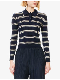 PRODUCT DETAILS - Reformation merino-wool polo top - 100% merino wool - Button fastening - Regular fit, collar, long sleeves, all-over stretch-rib knit, vertical stripe print, ribbed trims - Dry clean - True to size - Model is 5ft 10in/1.78m and wears a size small - Lightweight, stretchy Ref: R04546877