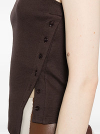 Hudson tank Highlights - Dark brown - Side button fastening - Boat neck Imported Composition Organic Cotton 97%, Spandex/Elastane 3% SIZE & FIT Model measurements Height 5 ft 10 in(1.77 m) Bust/Chest 30.31 in(77 cm) Hips 36.22 in(92 cm) Waist 24.8 in(63 cm) FittingInformation Designed for a close fit throughout Made from a midweight stretch fabric, this piece offers elasticity and flexibility when worn Washing instructions Machine Wash