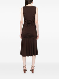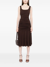 Kayla dress Highlights - Coffee brown - Ruched detailing - Sleeveless - Square neck Made in United States Composition TENCEL™ Lyocell (LENZING) 88%, Spandex/Elastane 12% SIZE & FIT Model measurements Height 6 ft 2 in(1.88 m) Bust/Chest 36.61 in(93 cm) Hips 36.22 in(92 cm) Waist 27.55 in(70 cm) FittingInformation Designed for a slim fit that sits just away from the body offering a close yet comfortable fit Made from a midweight stretch fabric, this piece offers elasticity and flexibility when worn Washing instructions Machine Wash