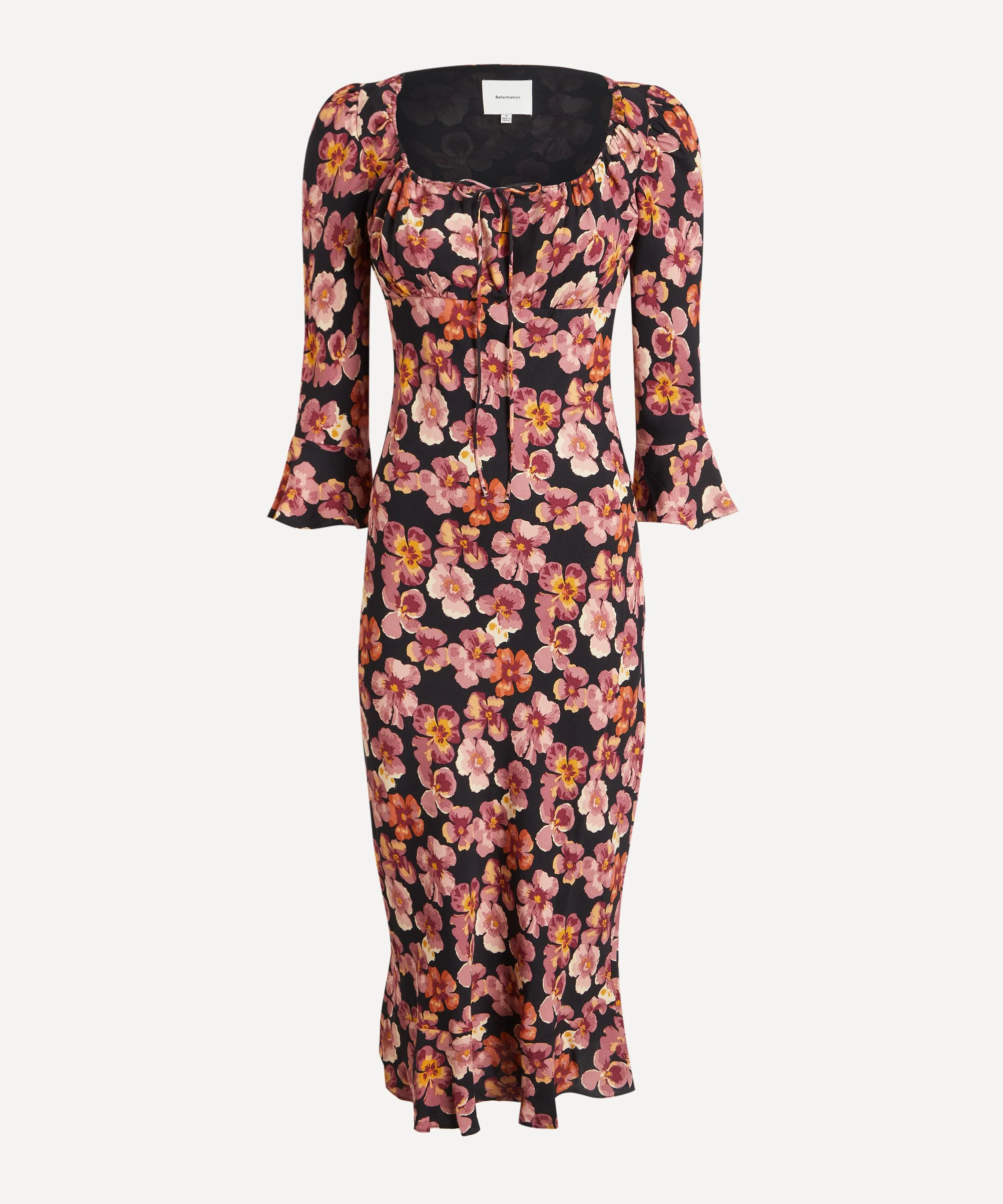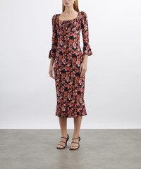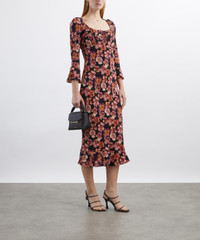 DETAILS Kiley midi dress Scoop neckline Viscose Floral print Bell sleeves SIZE & FIT 188cm/6'2"; Chest: 91cm; Waist: 79cm COMPOSITION & CARE 51% Viscose and 49% Viscose made with CIRCULOSE® recycled from textile waste. Dry clean