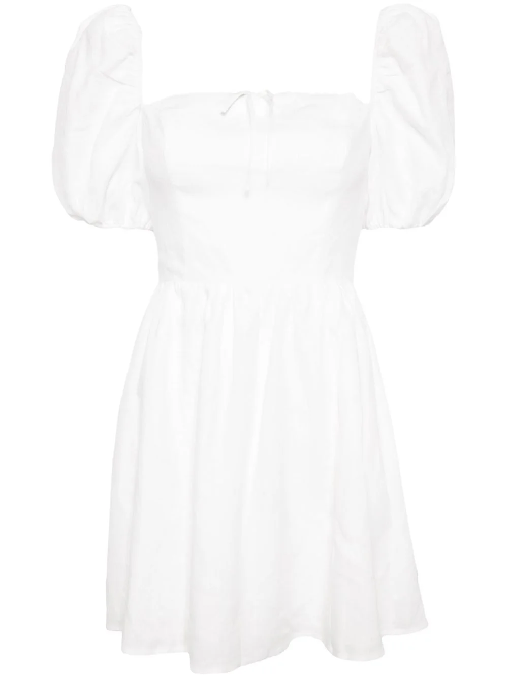 Malvina dress Highlights - White - Linen - Concealed rear zip fastening - Short puff sleeves - Square neck - Lace trim - Bow detailing - Smocked panel - Flared skirt - Organic-cotton lining Imported Composition Lining: Organic Cotton 100% Body: Linen/Flax 100% SIZE & FIT Model measurements Height 5 ft 10 in(1.77 m) Bust/Chest 27.95 in(71 cm) Hips 34.64 in(88 cm) Waist 22.83 in(58 cm) FittingInformation Designed for a close fit at the chest and waist with a loose fit at the hip Made from a midweight non-stretch fabric