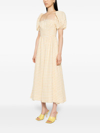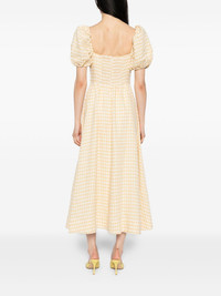 Marella linen dress Highlights - Butter yellow - Concealed rear hook and zip fastening - Square neck - Balloon sleeves - Bow detailing Imported Composition Lining: Rayon 100% Outer: Linen/Flax 100% SIZE & FIT Model measurements Height 5 ft 10 in(1.77 m) Bust/Chest 30.31 in(77 cm) Hips 34.25 in(87 cm) Waist 25.19 in(64 cm) FittingInformation Designed for a close fit at the chest and waist with a loose fit at the hip The partially elasticated waistband offers increased movement and comfort at the waist Made from a midweight non-stretch fabric Washing instructions Machine Wash