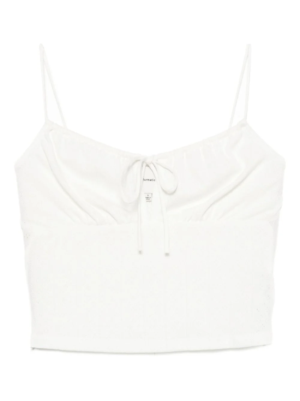 Marissa tank Highlights - White - Drawstring fastening - Pointelle knit Made in United States Composition Organic Cotton 100% SIZE & FIT Model measurements Height 5 ft 10 in(1.77 m) Bust/Chest 30.31 in(77 cm) Hips 36.22 in(92 cm) Waist 24.8 in(63 cm) FittingInformation Designed for a close fit throughout Made from a midweight non-stretch fabric Washing instructions Machine Wash