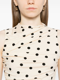 Marlo knit top Highlights - Beige - Polka dot print - Straight hem Imported Composition TENCEL™ Lyocell (LENZING) 88%, Spandex/Elastane 12% SIZE & FIT Model measurements Height 5 ft 10 in(1.77 m) Bust/Chest 30.31 in(77 cm) Hips 36.22 in(92 cm) Waist 24.8 in(63 cm) FittingInformation Designed for a close fit throughout Made from a midweight stretch fabric, this piece offers elasticity and flexibility when worn This piece fits close in all sizes – take your usual size Washing instructions Machine Wash