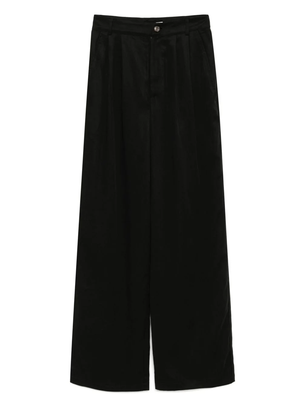Mason trousers Highlights - Black - Front button and zip fastening - Two front patch pockets - Two rear welt pockets - Belt loops Imported Composition TENCEL™ Lyocell (LENZING) 100% SIZE & FIT Model measurements Height 5 ft 9 in(1.76 m) Bust/Chest 31.1 in(79 cm) Hips 35.03 in(89 cm) Waist 24.4 in(62 cm) FittingInformation Designed with a wide-leg cut, these trousers allow for a close fit at the waist and offer a loose and roomy fit over the leg Made from a midweight non-stretch fabric Washing instructions Machine Wash