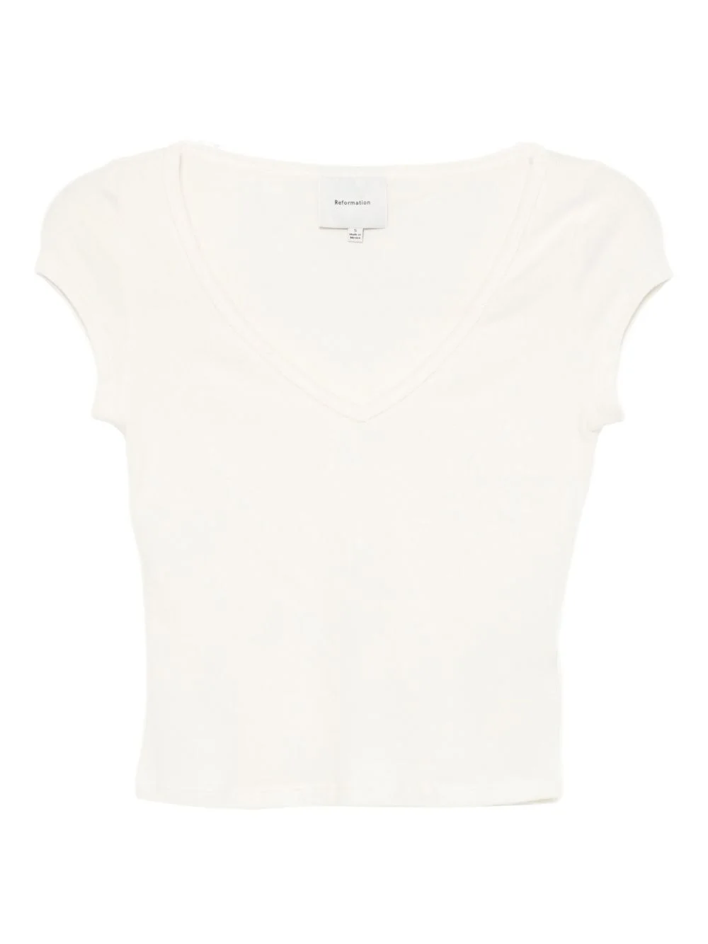 Mateo T-shirt Highlights - Ivory - V-neck - Short sleeves Imported Composition TENCEL™ Lyocell (LENZING) 67%, Organic Cotton 29%, Spandex/Elastane 4% SIZE & FIT Model measurements Height 5 ft 10 in(1.77 m) Bust/Chest 30.31 in(77 cm) Hips 36.22 in(92 cm) Waist 24.8 in(63 cm) FittingInformation Designed for a close fit throughout Made from a midweight stretch fabric, this piece offers elasticity and flexibility when worn