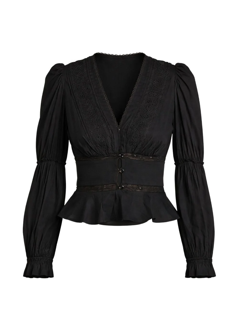 Meadowlark V-neck blouse Highlights - Black - V-neck - Long sleeves - Button fastening - Peplum hem Imported Composition Cotton 50%, EcoVero Viscose (LENZING) 50% Washing instructions Read Manufacturer Guidelines