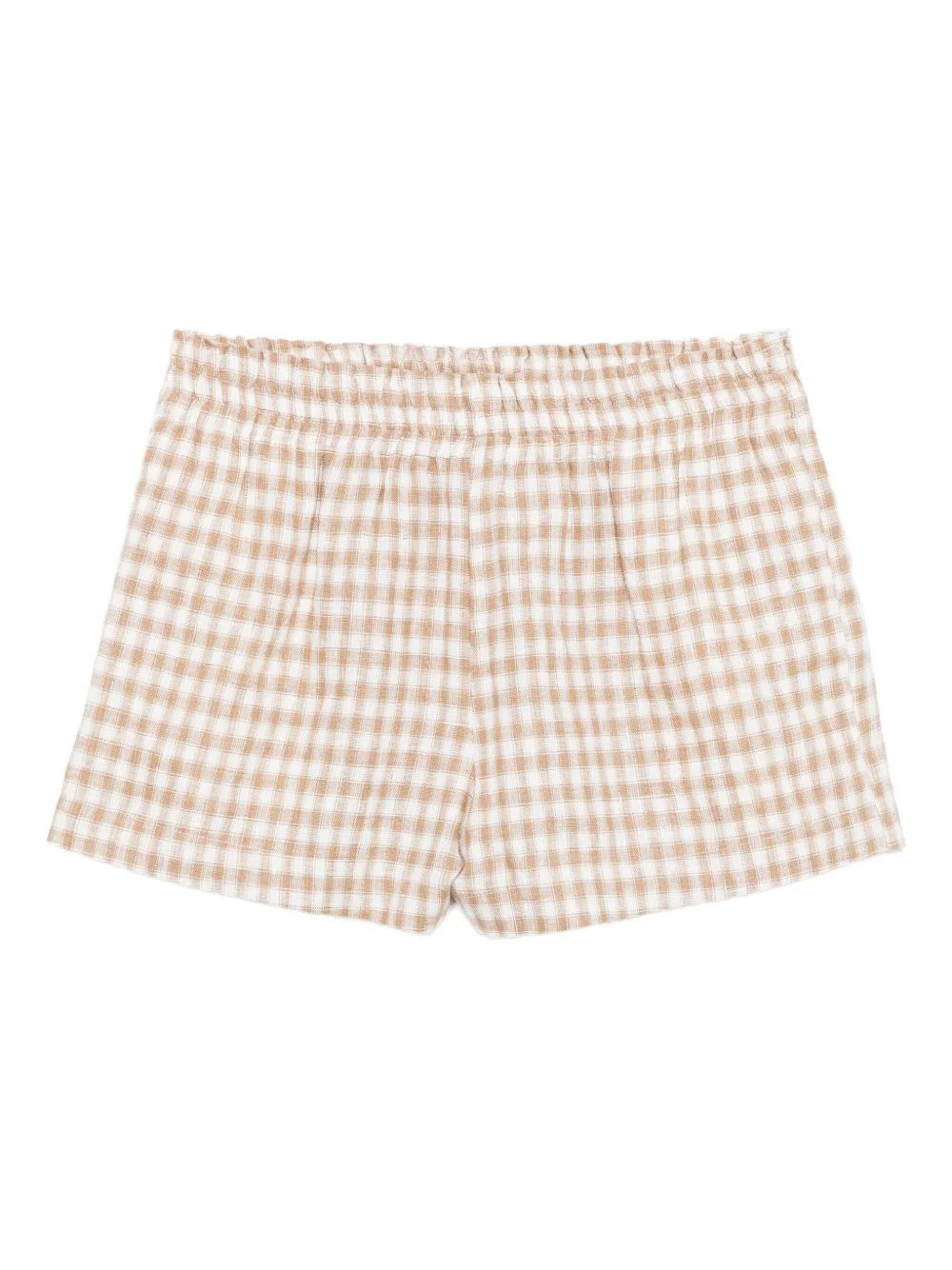 Mila short light brown elasticated waistband two side inset pockets Imported Composition Lining: Rayon 100% Outer: Linen/Flax 100% Washing instructions Machine Wash