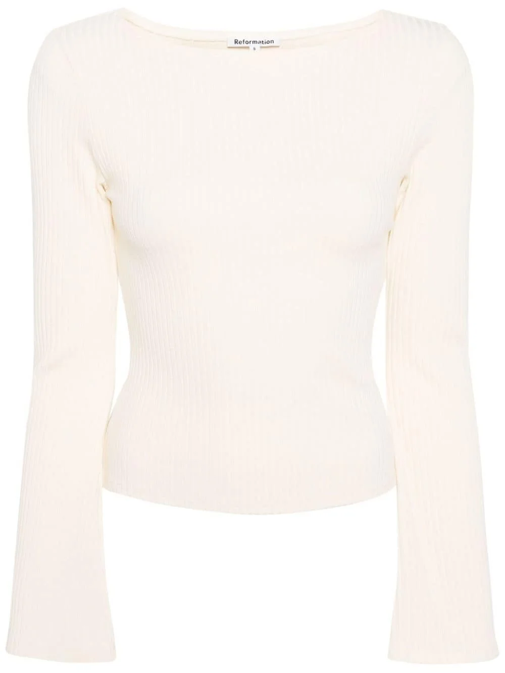 Miller ribbed top Highlights - Cream white - Tencel™ lyocell-organic cotton blend - Stretch-design - Ribbed knit - Boat neck - Long sleeves - Straight hem Made in United States Composition Organic Cotton 45%, TENCEL™ Lyocell (LENZING) 45%, Spandex/Elastane 10% SIZE & FIT Model measurements Height 5 ft 10 in(1.78 m) Bust/Chest 32.67 in(83 cm) Hips 37 in(94 cm) Waist 25.59 in(65 cm) FittingInformation Designed for a slim fit that sits just away from the body offering a close yet comfortable fit Made with a midweight knit, this piece offers some stretch This piece fits true to size – take your usual size