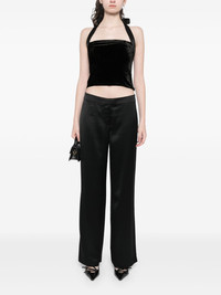 Mimi pants Highlights - Black - Satin finish - Hook and zip fly fastening - Low-rise - Straight hem Imported Composition Acetate 84%, Polyester 16% SIZE & FIT Model measurements Height 5 ft 10 in(1.79 m) Bust/Chest 31.88 in(81 cm) Hips 36.22 in(92 cm) Waist 24.4 in(62 cm) FittingInformation Designed for a straight-leg fit, these trousers allow for a close fit at the waist and an unrestricted, comfortable fit over the leg Made from a midweight non-stretch fabric
