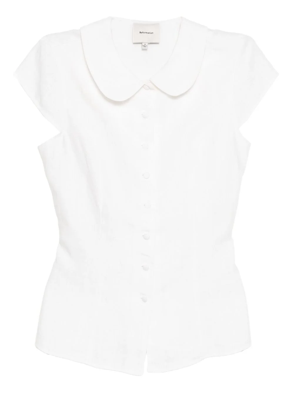 Molly shirt Highlights - White - Front button fastening - Cap sleeves Made in United States Composition Linen/Flax 100% SIZE & FIT Model measurements Height 5 ft 10 in(1.77 m) Bust/Chest 30.31 in(77 cm) Hips 36.22 in(92 cm) Waist 24.8 in(63 cm) FittingInformation Designed for a close fit throughout Made from a midweight non-stretch fabric This piece fits close in all sizes – take your usual size