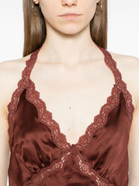 Monica top Highlights - Cedar brown - Lace detailing - V-neck Imported Composition Silk 100% SIZE & FIT Model measurements Height 5 ft 10 in(1.77 m) Bust/Chest 30.31 in(77 cm) Hips 36.22 in(92 cm) Waist 24.8 in(63 cm) FittingInformation Designed for a close fit throughout Made from a midweight non-stretch fabric This piece fits close in all sizes – take your usual size