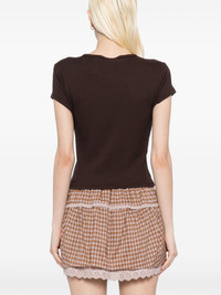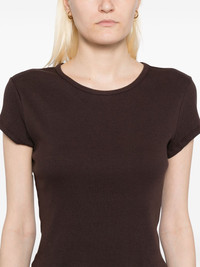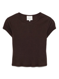 Muse t-shirt Highlights - Dark brown - Straight hem - Short sleeves Made in United States Composition Organic Cotton 97%, Spandex/Elastane 3% SIZE & FIT Model measurements Height 5 ft 9 in(1.76 m) Bust/Chest 31.1 in(79 cm) Hips 35.03 in(89 cm) Waist 24.4 in(62 cm) FittingInformation Designed for a slim fit that sits just away from the body offering a close yet comfortable fit Made from a midweight stretch fabric, this piece offers elasticity and flexibility when worn