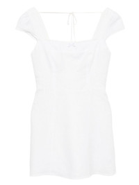 Loula linen dress Highlights - White - Rear zip fastening - Sleeveless - Square neck Imported Composition Linen/Flax 100% SIZE & FIT Model measurements Height 5 ft 9 in(1.76 m) Bust/Chest 31.1 in(79 cm) Hips 35.03 in(89 cm) Waist 24.4 in(62 cm) FittingInformation Designed for a close fit at the chest and waist with a loose fit at the hip Made from a midweight non-stretch fabric