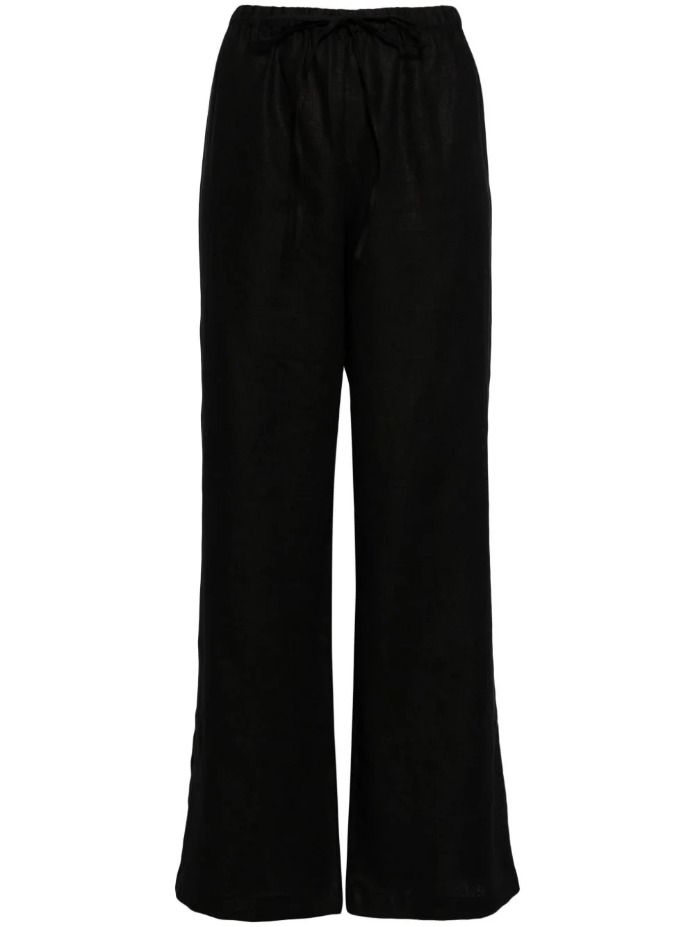 Olina linen trousers Highlights - Black - Stretch-design - Straight leg - Elasticated drawstring waistband - Floor-length Imported Composition TENCEL™ Lyocell (LENZING) 88%, Spandex/Elastane 12% SIZE & FIT Model measurements Height 5 ft 10 in(1.78 m) Bust/Chest 32.67 in(83 cm) Hips 37 in(94 cm) Waist 25.59 in(65 cm) FittingInformation Designed for a straight-leg fit, these trousers allow for a close fit at the waist and an unrestricted, comfortable fit over the leg The elasticated waist allows for a comfortable fit Made from a midweight non-stretch fabric This piece fits true to size – take your usual size