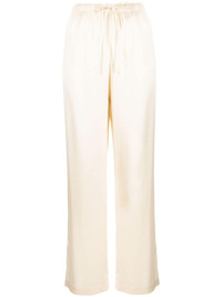 Olina silk trousers Highlights - Light beige - Silk satin - Elasticated drawstring waistband - Two side slit pockets - Straight leg Imported Composition Silk 100% SIZE & FIT Model measurements Height 5 ft 9 in(1.75 m) Bust/Chest 31.88 in(81 cm) Hips 35.03 in(89 cm) Waist 23.22 in(59 cm) FittingInformation Designed for a straight-leg fit, these trousers allow for a close fit at the waist and an unrestricted, comfortable fit over the leg Adjust this piece’s waistband to your preference using the drawstring Made from a lightweight non-stretch fabric This piece fits true to size – take your usual size