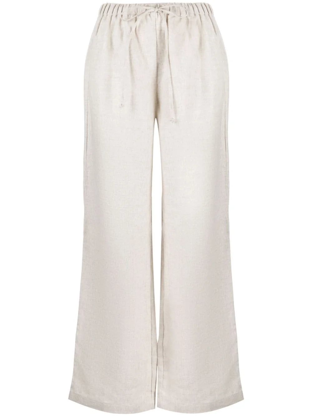 Olina straight-leg linen trousers Highlights - Sand beige - Linen/flax - Mid-rise - Straight leg - Elasticated drawstring waistband Imported Composition Body: Linen/Flax 100% SIZE & FIT Model measurements Height 5 ft 10 in(1.77 m) Bust/Chest 31.49 in(80 cm) Hips 35.43 in(90 cm) Waist 25.19 in(64 cm) FittingInformation Designed for a straight-leg fit, these trousers allow for a close fit at the waist and an unrestricted, comfortable fit over the leg Adjust this piece’s waistband to your preference using the drawstring Made from a midweight non-stretch fabric This piece fits true to size – take your usual size