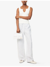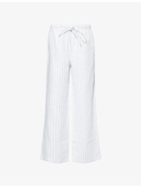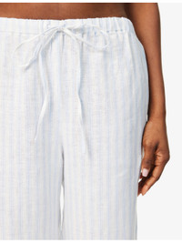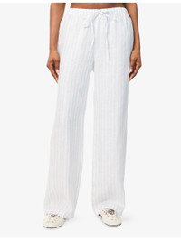 PRODUCT DETAILS - Reformation linen trousers - 100% linen - Self-tie fastening at waist - Relaxed-fit, drawstring waist, all-over stripe print - Machine wash at 30°C - True to size - Model is 5ft 10in/1.78m and wears a size small - Lightweight, non-stretch Ref: R04459967