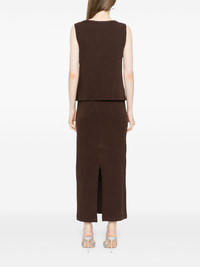 Olivia two piece Highlights - Coffee brown - Front button fastening - Elasticated waistband - V-neck - Rear slit Made in United States Composition TENCEL™ Lyocell (LENZING) 67%, Organic Cotton 29%, Spandex/Elastane 4% SIZE & FIT Model measurements Height 5 ft 10 in(1.77 m) Bust/Chest 30.31 in(77 cm) Hips 36.22 in(92 cm) Waist 24.8 in(63 cm) FittingInformation This maxi-length skirt is intended to be worn just below the waist The elasticated waist allows for a comfortable fit Made from a midweight stretch fabric, this piece offers elasticity and flexibility when worn This piece fits close in all sizes – take your usual size Washing instructions Hand Wash