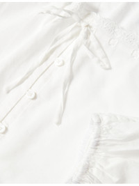 PRODUCT DETAILS - Reformation cotton blend pyjama set - 50% viscose, 50% cotton - Button fastening at front - Top: ruffled neckline with adjustable bow tie, long sleeves, elasticated hem, button fastening at front, embroidered hem detailing - Bottom: elasticated waist, straight leg, embroidered hem detailing - Machine wash at 30°C - True to size - Model is 5ft 10in/1.78m and wears a size small - Lightweight, non-stretch Ref: R04549214