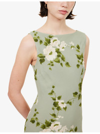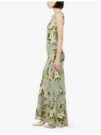 PRODUCT DETAILS - Reformation georgette maxi dress - 100% viscose; lining 100% viscose - Slim fit, boat neckline, sleeveless, bias stitching, all-over floral print, maxi length, lined - Dry clean - True to size - Size small: length 58in / 147cm - Model is 5ft 10in/1.78m and wears a size small - Lightweight, non-stretch Ref: R04598623