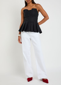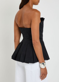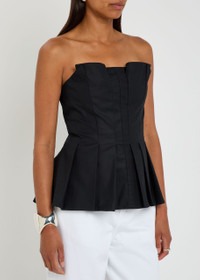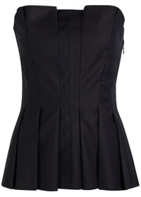 Info & Care Reformation stretch-cotton top Pleated, strapless, boning through back, peplum hem, partially lined Concealed zip fastening at side 98% organic cotton, 2% elastane; lining: 100% rayon Dry clean Size & Fit Length shoulder to hem: 18 inches/ 46cm Midweight Fit-and-flare style Model is 5'8"/ 173cm and wears a size;US4;