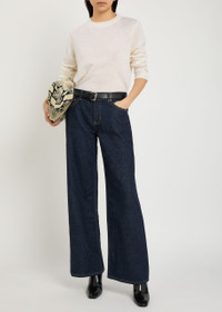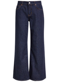 Info & Care Reformation denim jeans Low-rise fit, wide-leg cut, belt loops, five pockets Partially concealed zip and button fastenings at front 80% regenerative cotton, 20% recycled cotton Machine wash cold inside out to avoid colour transfer Size & Fit Front rise: 9.5 inches/ 24cm Inside leg length: 31 inches/ 79cm Midweight Model is 5'10"/ 178cm and wears a size;W27