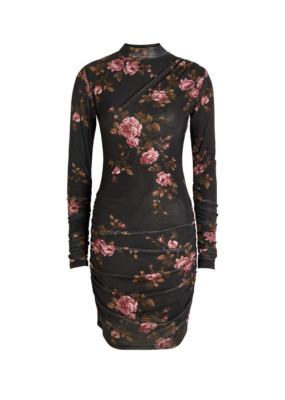 Info & Care Reformation mesh dress Floral print, mock-neck, ruched sleeves and sides, fully lined Slips on 93% polyester, 7% spandex; lining: 92% nylon, 8% spandex Hand wash Size & Fit Length shoulder to hem: 38 inches/ 96.5cm Midweight Slim fit Model is 5'10"/ 178cm and wears a size small