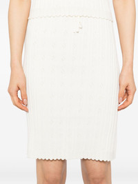 Erin skirt set Highlights - Top - Ivory - Scoop neck - Sleeveless - Bottom - Ivory - Elasticated waistband - Scallop hem Imported Composition Organic Cotton 95%, Nylon 4%, Spandex/Elastane 1% SIZE & FIT Model measurements Height 5 ft 10 in(1.77 m) Bust/Chest 30.31 in(77 cm) Hips 34.25 in(87 cm) Waist 25.19 in(64 cm) FittingInformation This midi-length skirt is intended to be worn just below the waist The elasticated waist allows for a comfortable fit Made with a lightweight knit, this piece offers some stretch Washing instructions Hand Wash