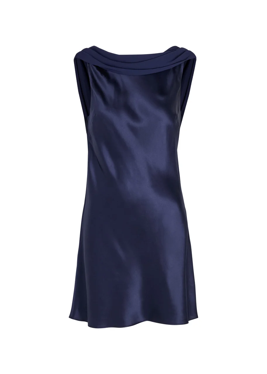 Info & Care Reformation silk dress Georgette high cowl-neck, strap across;low back, draped details, fully lined Concealed hook fastenings at back 100% silk; lining: 100% viscose Dry clean Size & Fit Length shoulder to hem: 33 inches/ 84cm Midweight Loose fit,;draped style A-line cut Model is 5'10"/ 178cm and wears a size small