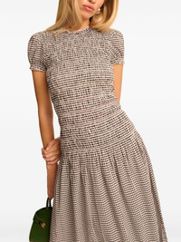 gingham smocked dress Highlights - Off-white - Black gingham check pattern - Smocked bodice - Short puff sleeves - Round neckline - Tiered skirt Imported Composition EcoVero Viscose (LENZING) 50%, Organic Cotton 50% Washing instructions Read Manufacturer Guidelines