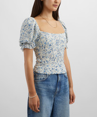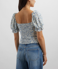 DETAILS Georgette top Fitted throughout Square neckline Short puff sleeves Smocked back SIZE & FIT Model is 175cm/5'9"; Chest: 81cm; Waist: 63.5cm; Hip: 92.5cm and wears a size 8 COMPOSITION & CARE 100% Viscose Dry clean