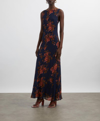 DETAILS Georgette maxi dress Slim fit Boat neckline Sleeveless SIZE & FIT Model is 175cm/5'9"; Chest 75cm; Waist: 23.5cm; Hip: 33.5cm and wears a size S COMPOSITION & CARE 100% Viscose Dry clean