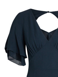 Salvia flutter-sleeve midi dress Highlights - Navy blue - V-neck - Flutter sleeves - Open back - Button fastening - Pleated hem Imported Composition Viscose 100% Washing instructions Read Manufacturer Guidelines