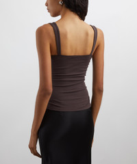 DETAILS Stretch jersey top Close fit Ruched detailing SIZE & FIT Model is 175cm/5'9"; Chest: 81cm; Waist: 63.5cm; Hip: 92.5cm and wears a size S COMPOSITION & CARE 88% Cotton; 12% Spandex Wash cold. Dry flat