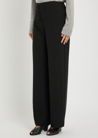 Info & Care Reformation crepe trousers Faux front slip pockets, back slit pockets; Concealed hook, button and zip fastening at front 71% NAIA™, 29% polyester; Dry clean Size & Fit Inside leg length: 32 inches/ 81.5cm Midweight Straight-leg cut, high-rise fit Model is 5'9"/ 175cm and wears a size;US4
