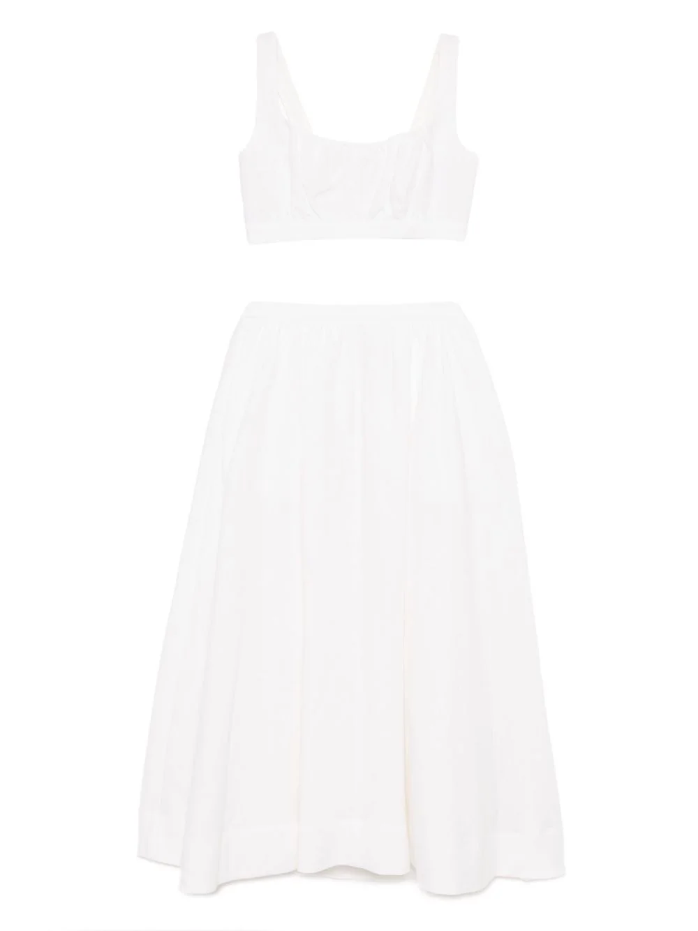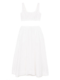 Shannon linen two piece Highlights - Top - White - Rear zip fastening - Scoop neck - Sleeveless - Bottom - White - Rear zip fastening - Two side seam pockets - Straight hem Made in United States Composition Linen/Flax 100% SIZE & FIT Model measurements Height 5 ft 9 in(1.76 m) Bust/Chest 31.1 in(79 cm) Hips 35.03 in(89 cm) Waist 24.4 in(62 cm) FittingInformation This midi-length skirt is intended to be worn high on the waist The partially elasticated waistband offers increased movement and comfort at the waist Made from a midweight non-stretch fabric Washing instructions Machine Wash