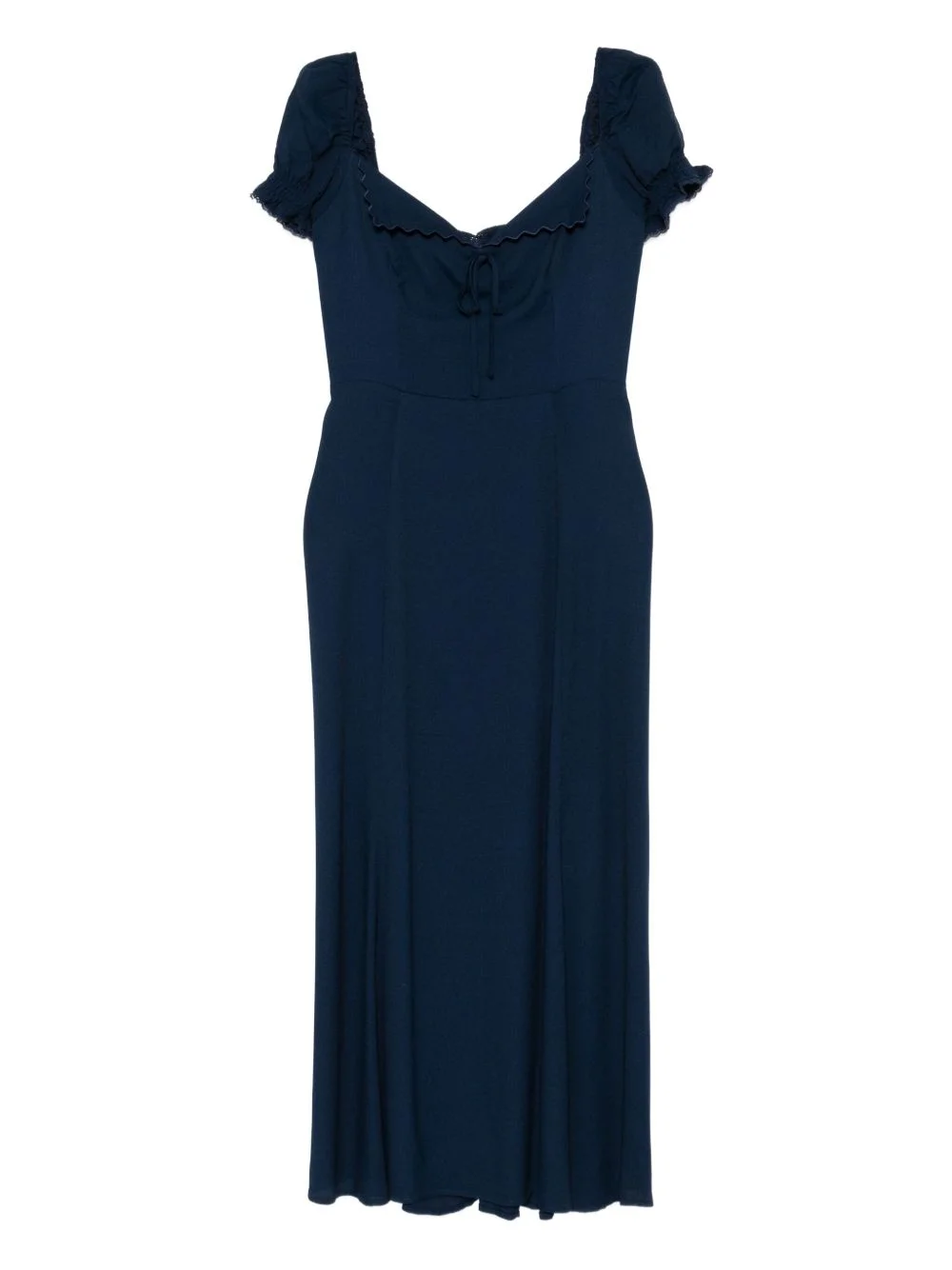 Shyla dress Highlights - Navy blue - Concealed rear hook and zip fastening - Short puff sleeves Imported Composition Outer: Viscose 53%, EcoVero Viscose (LENZING) 47% Lining: Viscose 100% SIZE & FIT Model measurements Height 5 ft 10 in(1.77 m) Bust/Chest 30.31 in(77 cm) Hips 36.22 in(92 cm) Waist 24.8 in(63 cm) FittingInformation Designed for a slim fit that sits just away from the body offering a close yet comfortable fit Made from a midweight non-stretch fabric Washing instructions Dry Clean Only