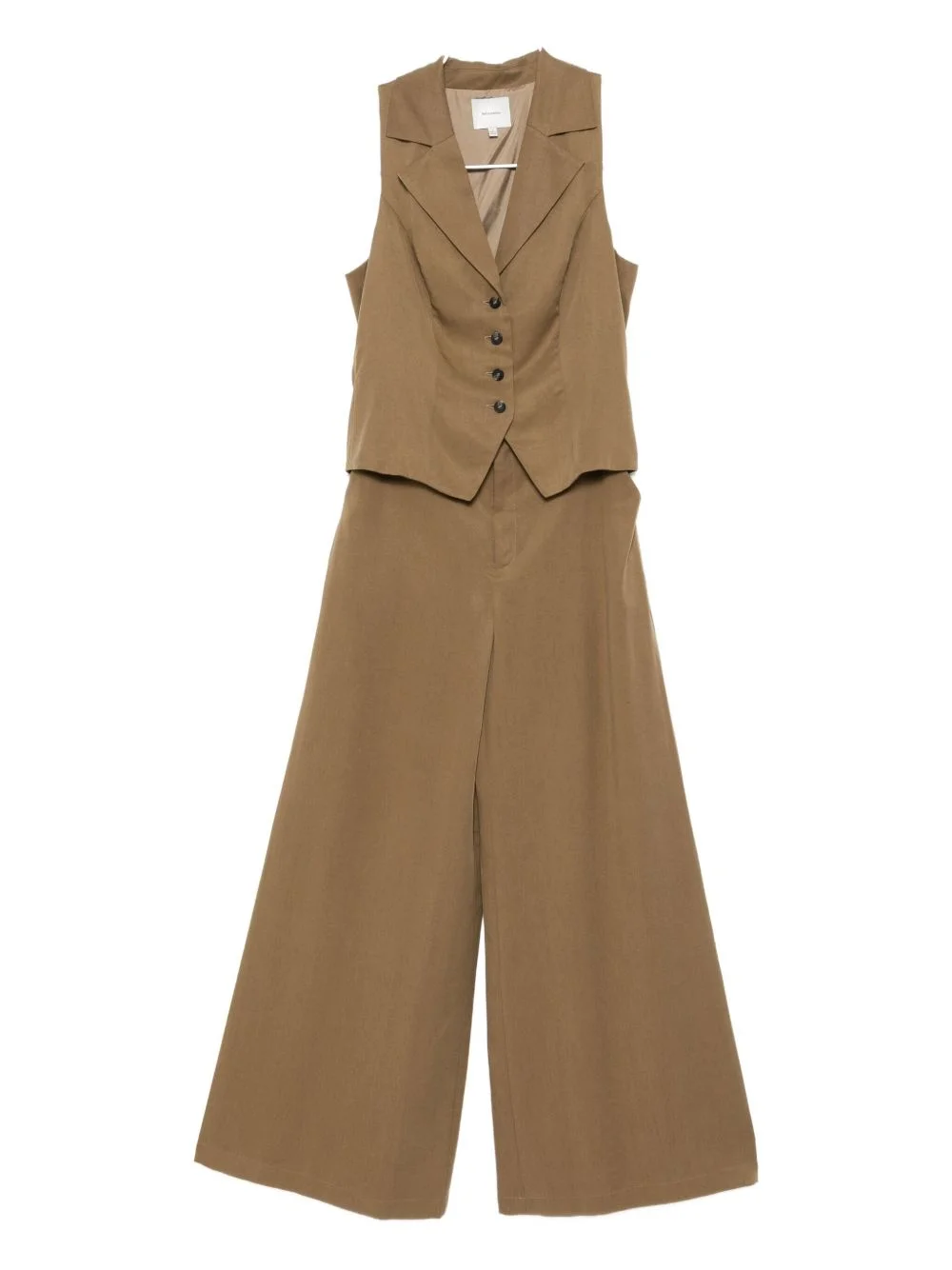 Taryn set (set of two) Highlights - Camel brown - Front button fastening - Concealed front button, hook and zip fastening - Rear tie fastening Imported Composition Lining: Polyester 100% Outer: TENCEL™ Lyocell (LENZING) 100% SIZE & FIT Model measurements Height 5 ft 10 in(1.77 m) Bust/Chest 30.31 in(77 cm) Hips 36.22 in(92 cm) Waist 24.8 in(63 cm) FittingInformation Designed with a wide-leg cut, these trousers allow for a close fit at the waist and offer a loose and roomy fit over the leg Made from a midweight non-stretch fabric Washing instructions Machine Wash