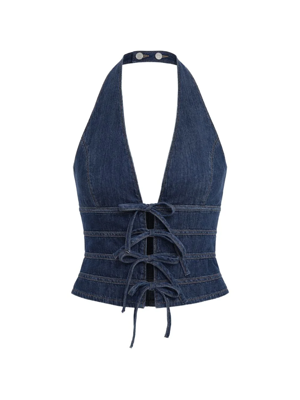 tie detail halter top Highlights - Blue - Cotton - Tie fastening - Halter neck - Button fastening - Sleeveless - Panelling Imported Composition Cotton 100% Washing instructions Read Manufacturer Guidelines