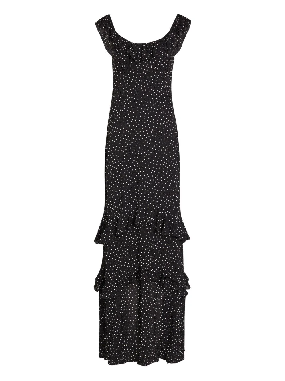 ruffled polka-dot maxi dress Highlights - Black - Polka-dot pattern - Ruffled detail - Tiered-skirt - Sleeveless Imported Composition Viscose 100% Washing instructions Dry Clean Only