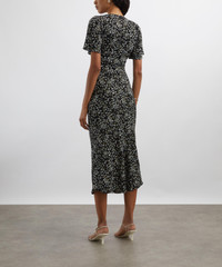 DETAILS Crepe midi dress Black ditsy floral print V-neckline Pussy-bow ties Empire waist Flowy skirt SIZE & FIT Model is 175cm/5'9"; Chest: 81cm; Waist: 63.5cm; Hip: 92.5cm and wears a size 8 COMPOSITION & CARE 53% Viscose; 47% TENCEL™ Lyocell Dry clean