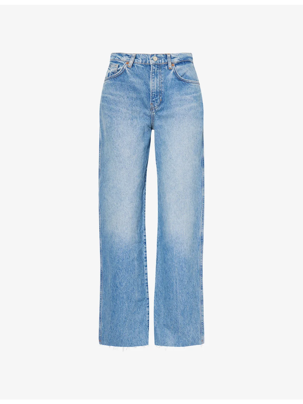 PRODUCT DETAILS - Reformation denim jeans - 57% cotton, 43% lyocell - Regular fit, mid-rise, straight leg, belt loops, five pockets, frayed raw-edge at ankle - Machine wash at 30°C - Made in Turkey - True to size - Size 26: rise 12in / 30.5cm, inside leg 32in / 81cm, leg opening 18in / 45.5cm - Model is 5ft 10in/1.78m and wears a size 26 - Midweight, non-stretch Ref: R04614311
