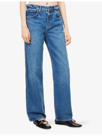 PRODUCT DETAILS - Reformation denim jeans - 57% cotton, 43% TENCEL™ lyocell - Exposed button and concealed zip-fly fastening at front - Regular fit, mid-rise, straight leg, structured waistband with belt loops, five pockets, branded hardware, V-shaped yoke at back - Machine wash at 30°C - True to size - Midweight, non-stretch Ref: R04522335