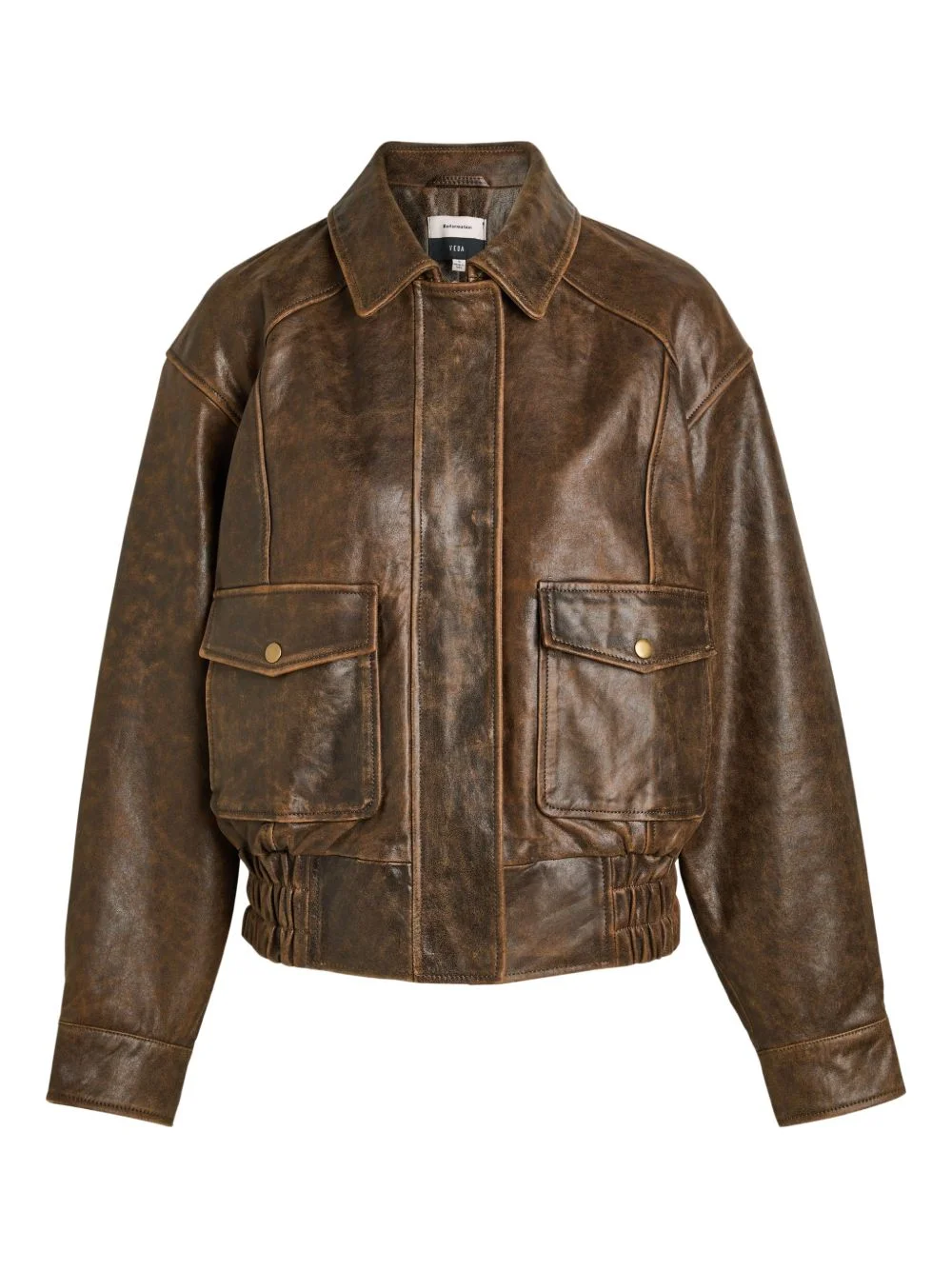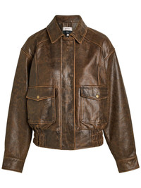 Daphne leather jacket Highlights - Roasted coffee brown - Flap pockets - Elasticated hem - Pointed collar - Long sleeves - Press-stud cuffs Imported Composition Outer: Calf Leather 100% Lining: Polyester 100% Washing instructions Dry Clean Only