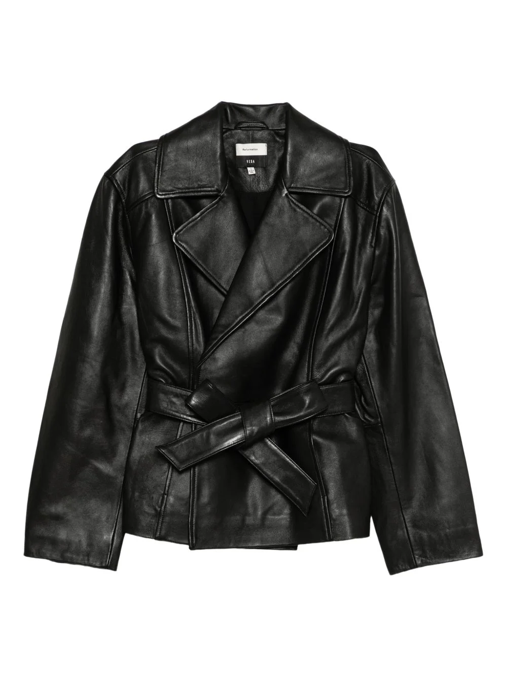 Veda jaden jacket Highlights - Black - Front tie fastening - Detachable waist belt Imported Composition Lining: Polyester 100% Outer: Leather 100% Washing instructions Do Not Wash/Do Not Dry Clean