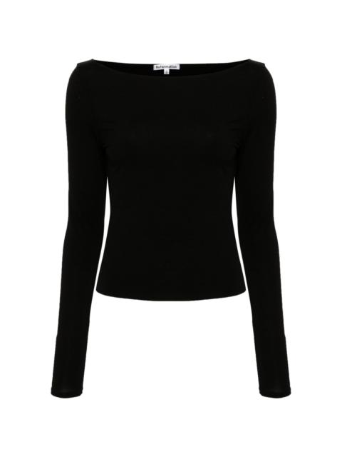 Wiley boat-neck top Highlights - Black - Tencel™ lyocell blend - Lightweight jersey - Boat neck - Long sleeves Made in United States Composition TENCEL™ Lyocell (LENZING) 88%, Spandex/Elastane 12% SIZE & FIT Model measurements Height 5 ft 10 in(1.78 m) Bust/Chest 32.67 in(83 cm) Hips 37 in(94 cm) Waist 25.59 in(65 cm) FittingInformation Designed for a close fit throughout Made from a lightweight stretch fabric, this piece offers elasticity and flexibility when worn This piece fits true to size – take your usual size