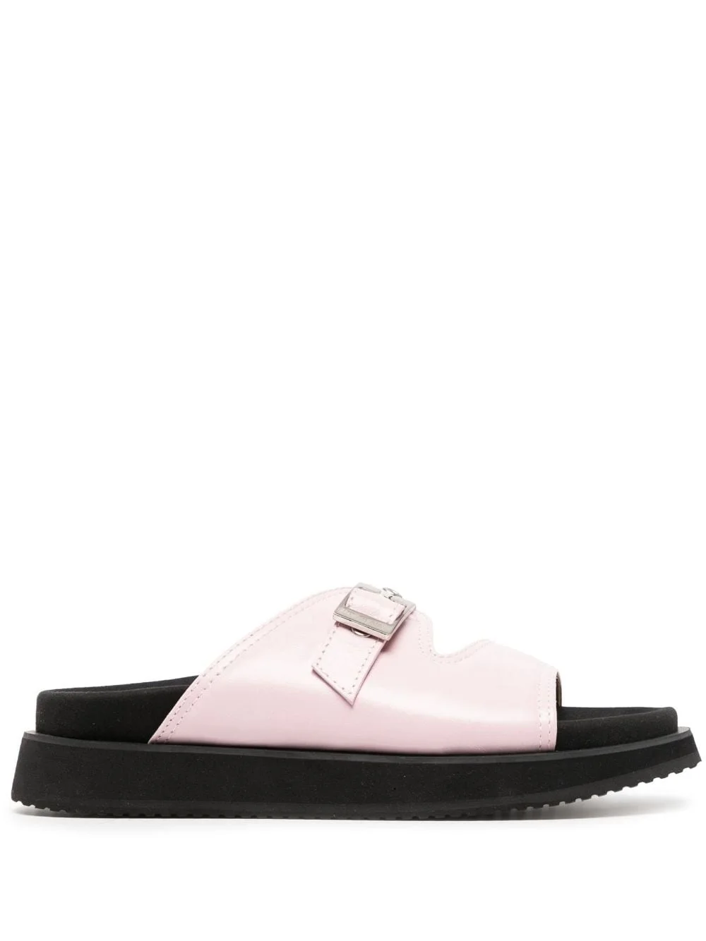 buckle-fastening leather sandals Highlights - Powder pink - Calf leather - Smooth grain - Open toe - Round toe - Buckle fastening - Branded insole - Flat rubber sole - Slip-on style Made in Italy Composition Leather 100% SIZE & FIT Measurement Sole height 0.94 in(2.4 cm) Washing instructions Read Manufacturer Guidelines