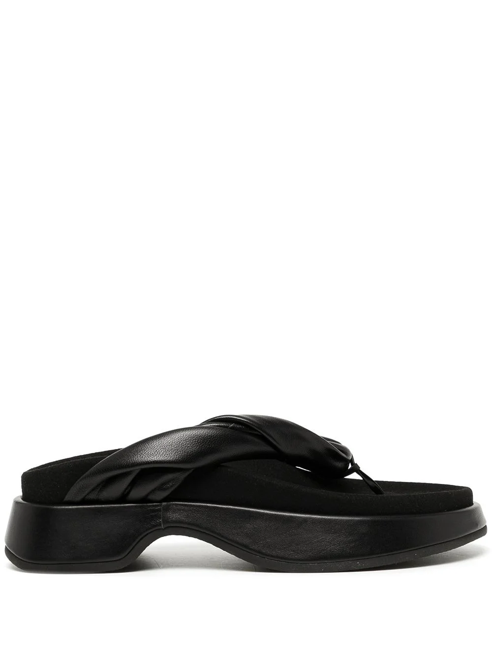 twist-strap platform flip flops black leather twist detailing thong strap open toe platform sole Imported Composition Leather 100% SIZE & FIT Measurement HEEL 1.57 in(4 cm) PLATFORM 0.98 in(2.5 cm)